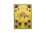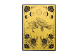 This tiny but powerful screen print features an anglerfish skeleton surrounded by moon phases and florals in our signature natural illustration style. Printed in a deliciously shimmery gold metallic that delights up close. The perfect size for adorning a small space or grouping together for a gallery wall effect.