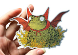 - “Devil Toad” was hand drawn by Joelle, printed on PVC free brushed metallic vinyl.