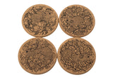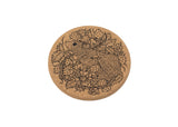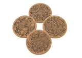 - 100% cork (sustainable, absorbent, sturdy; great for hot and cold drinks!)