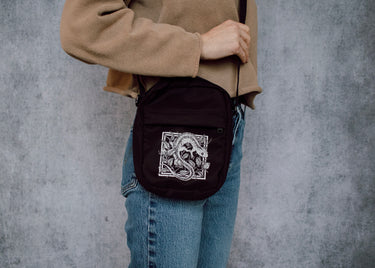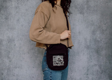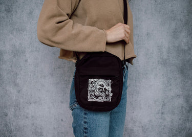 Constantly on the hunt for the perfect casual mini bag? Look no further! This everyday powerhouse featuring our statement making design of a salamander with rose hips is the right size for all of your essentials (phone, keys, wallet, a lil’ chapstick etc.) without being too bulky.