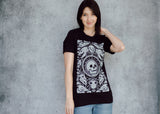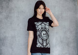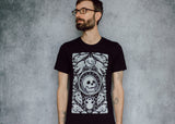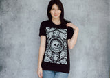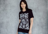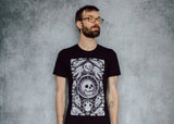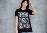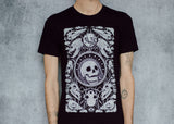 This comfy tee is the collector's dream! A veritable cabinet of curiosities with meticulously textured animal skulls (and one human, we shouldn’t be left out) among hyper detailed alchemical elements. The perfect shirt for those of us who swear we’ll buy something other than black next time (we never do).