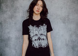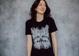 But that love of the unknown lives on in this ode to the titans of the cryptid world. All the classics are here : Bigfoot! Mothman! The Kraken! Jackalopes! My first love The Loch Ness Monster! It’s truly the perfect versatile black tee for the believer in all of us.