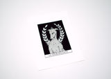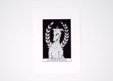 This gorgeous two color screen print is Joelle's interpretation of The Hierophant card from the Major Arcana of the tarot deck. Equal parts playful and symbolic it’s the perfect piece of decor for those who love to consult the cards. Printed in a deliciously shimmery silver metallic ink that delights up close. A great size for adorning a small space or grouping together for a gallery wall look.