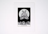 This gorgeous two color screen print is Joelle's interpretation of The High Priestess card from the Major Arcana of the tarot deck. Equal parts playful and symbolic it’s the perfect piece of decor for those who love to consult the cards. Printed in a deliciously shimmery silver metallic ink that delights up close. A great size for adorning a small space or grouping together for a gallery wall look.