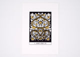 This gorgeous two color screen print is Joelle's interpretation of The Lovers card from the Major Arcana of the tarot deck. Equal parts playful and symbolic it’s the perfect piece of decor for those who love to consult the cards. Printed in a deliciously shimmery gold metallic ink that delights up close. A great size for adorning a small space or grouping together for a gallery wall look.