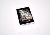 This gorgeous two color screen print is Joelle's interpretation of The Magician card from the Major Arcana of the tarot deck. Equal parts playful and symbolic it’s the perfect piece of decor for those who love to consult the cards. Printed in a deliciously shimmery copper metallic ink that delights up close. A great size for adorning a small space or grouping together for a gallery wall look.