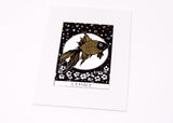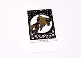 This gorgeous two color screen print is Joelle's interpretation of The Star card from the Major Arcana of the tarot deck. Equal parts playful and symbolic it’s the perfect piece of decor for those who love to consult the cards. Printed in a deliciously shimmery gold metallic ink that delights up close. A great size for adorning a small space or grouping together for a gallery wall look.