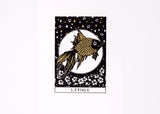 - “The Star Tarot" was hand drawn by Joelle then lovingly hand screen printed by Justin in black and gold water based eco ink at our Lemoyne, PA studio.