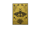 This tiny but powerful screen print features a tiger moth surrounded by flames and clover in our signature natural illustration style. Printed in a deliciously shimmery gold metallic that delights up close. The perfect size for adorning a small space or grouping together for a gallery wall effect.