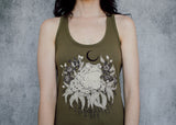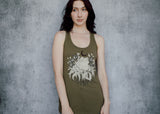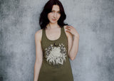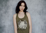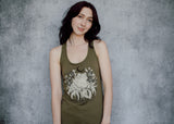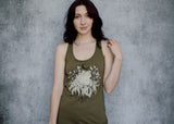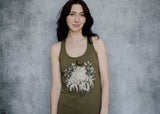 Not only are we obsessed with toads but we're also over the moon about this darling racerback tank top! It’s a rich and earthy olive green, the perfect canvas for our most demure of toads; positioned in a bed of toad lilies (we love a bit of visual wordplay).