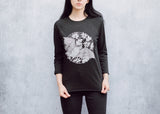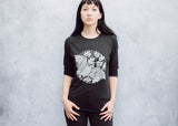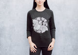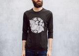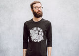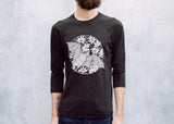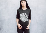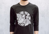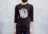 This soft and beautifully deep grey baseball makes a great team with our playful design. The circular pattern and entangled florals really pop against the heather background; plus the 3/4 length sleeve is perfect for that transitional weather in spring and fall (but don’t worry it looks fantastic layered too).