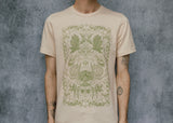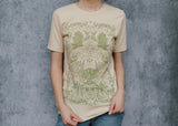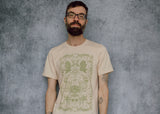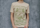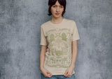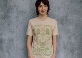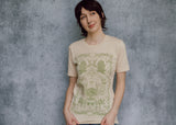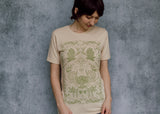 This perfectly soft beige tee is a tip of the hat to growers and market goers! The detail is truly over the top: cherry tomatoes, trailing peas, bunches of broccoli, hot peppers and leafy radishes, delectable chanterelles. It's enough to make your mouth water!