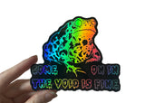 We have gazed upon the void and return with news that it is surprisingly toad shaped. Put a playful spin on that angst by adding our lumpy rainbow colored harbinger to your favorite water bottle or notebook. The perfect durable decal for toad fans and abyss embracers alike, because we all deserve a bit of existential crisis… as a treat.