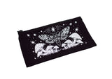 This sturdy black canvas pouch is a functional and multipurpose art object, equally at home in your backpack, art supply bag, or travel kit. The high quality organic cotton is hand printed with our dreamy moth and mushroom design and its health size means plenty of room for whatever you want to store inside!