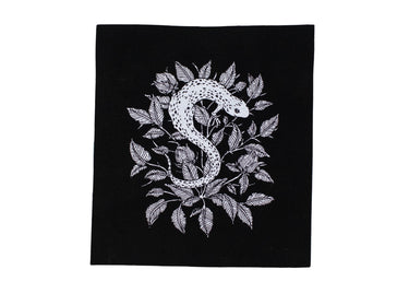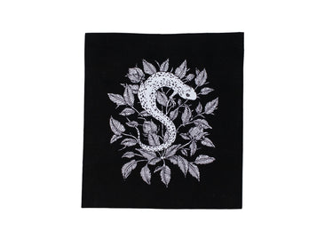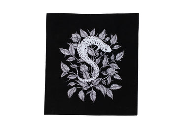 This detailed black colored sew-on patch features our original natural illustration of a spotted salamander and rosehip plant. A great small size for adding flair almost anywhere!
