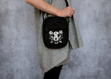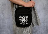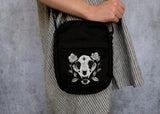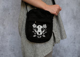 Constantly on the hunt for the perfect casual mini bag? Look no further! This everyday powerhouse featuring our detailed design of a cat skull and florals is the right size for all of your essentials (phone, keys, wallet, a lil’ chapstick etc.) without being too bulky.