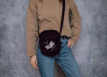 Constantly on the hunt for the perfect casual mini bag? Look no further! This everyday powerhouse featuring our playful design of a darling mouse with stars is the right size for all of your essentials (phone, keys, wallet, a lil’ chapstick etc.) without being too bulky.
