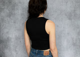 A stretchy and soft micro rib in a classic black, it's a dreamy casual piece that pairs just as well with a skirt as it does athleisure. Snug but not tight and super stylish; it's perfect for hot summer days, for layering, or as fashionable workout wear.