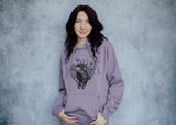 To me rabbits will always symbolize this time of rebirth and so it seems fitting to commit this playful design to a fresh feeling pullover in a beautiful dusky lavender. Nestled between daffodils under the watch of a crescent moon, this sweet little guy is an adorable harbinger of a world that is waking back up and stirring to life.